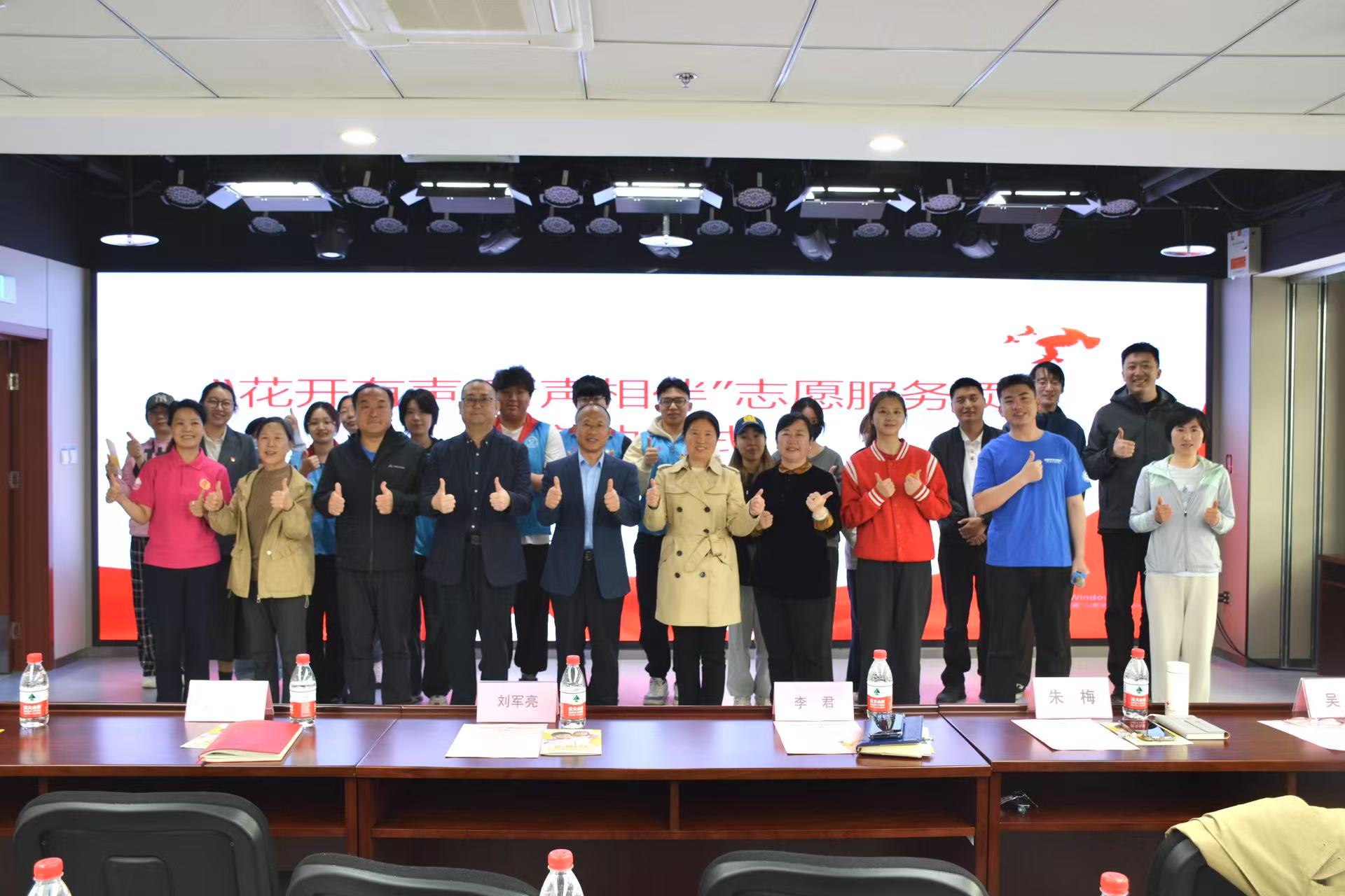 在全体见证下,李君、刘军亮、周京华、朱梅共同为志愿服务队揭牌,携手开启青年员工志愿者关爱听障群体的温暖旅程。